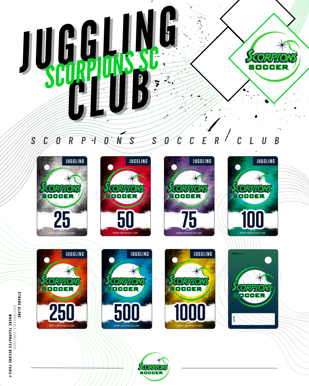The Scorpions SC Juggling Club is open to all current Scorpions SC players. It will encourage and challenge our players to spend